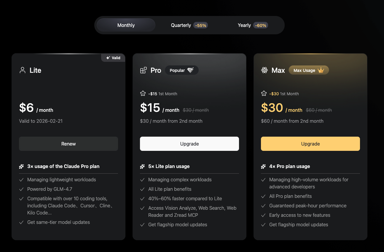 First things first—head over to z.ai and sign up for their lite plan. The best part? Your first month is only $3.